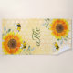 Happy bumble bees yellow sunflower couple monogram beach towel