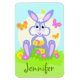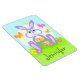 A happy cute cartoon bunny with bright butterfly friends and colourful flowers. You can personalize this magnet with your child's name or other text as desired. Use the "customize" feature to change font size, colour or style if you like. Have a happy day!