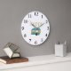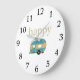 Happy Camper Personality Gold Teal Travel Trailer Large Clock