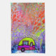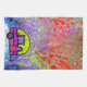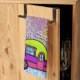Multi Coloured background with a colourful camper and the saying "Happy Camper" adorns this towel