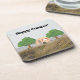 Happy Camper with a camper in the woods on a beverage coaster set.