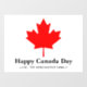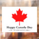 Happy Canada Day custom text with red maple leaf window cling sign.