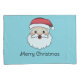 Happy Cartoon Santa Claus Head On Blue And Text Pillowcase