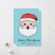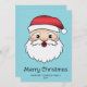 Destei's original cartoon illustration of a happy Santa Claus head. The Santa is wearing a red and white hat, he has a fluffy white beard and his face expression is joyful. The background colour is blue. There are also two personalizable text areas.