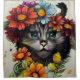 Happy Cat With Blue Eyes Surrounded By Flowers. Can be customized and personalized.