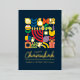 Happy Chanukah / Hanukkah Modern Geometric Holiday Greetings in Real Gold Foil on Dark Navy. Menorah, Dreidel, Donuts, Stars & Olive oil... They are all here. Jewish Hanukkah Symbols + Space to add your personalized text on the front & reverse. Hebrew on the reverse says, "Chanukah Sameach" — Happy Hanukkah. This upscale, beautiful, look, is a great way to wish friends, family, and clients, a very Happy Hanukkah / Chanukah.