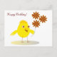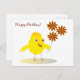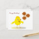 Happy chick with flowers postcard