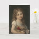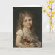 Happy Childhood - Vintage American art. Vintage Greeting Card. Painting depicts a young girl holding a bunch of flowers.