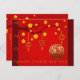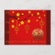 Stylized illustration with yellow "apricot" blossoms, Asian lanterns with red background. Design on horizontal holiday postcard with custom year 2022 and "HAPPY CHINESE NEW YEAR" in yellow + a small "golden" Rabbit paper-cut (image printed) in the corner. You can easily change text (font colour, size and position) + delete the Tiger illustration if you want by clicking the customize button. Matching greeting card. Perfect for Chinese New Year of the Rabbit 2023.