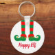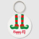 Happy Christmas elf keychain with custom text. Personalized Holiday party favour for kid's and adults. Cute xmas design with elf's feet.