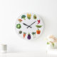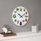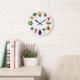 Grande Horloge Ronde Happy Colorful Crochet Collage de champignons végé