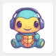 Happy Colourful Kawaii Turtle Wearing Headphones Square Sticker