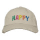 This is a fun, colourful 'distressed' baseball cap with the word HAPPY spelled in big colourful embroidered letters! It will make a cool and happy Christmas gift idea for someone you love!