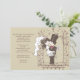 An adorable newlywed-couple stands in front of a decorative gate. The groom is carrying his bride over the first threshold. She carries her bouquet. A cute invitation for a Post Wedding Brunch celebration. The card is easy to customize with your wording, font, font colour and choice of six paper types.