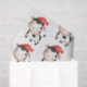 Tissue paper with an adorable image of a black and white spotted cow wearing a red hat.