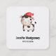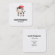 Business cards with an adorable image of a black and white spotted cow wearing a red hat.
