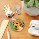 Cute orange and black tiger whimsy big cat animal watercolor on a green jungle background. Original art by Sarah Trett for www.mylittleeden.com