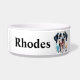 I absolutely love this product! I was a little concerned prior to buying it, but I was blown away by the quality of the item. The bowl is sturdy and arrived clean without any damage. The printing was crisp and clean and looks Better than I hoped! My dogs immediately knew these were for them and get very excited to pose with their new bowls! Definitely recommend and will purchase more in the future! The printing is crisp and well done. It looks absolutely beautiful on the bowl, and I can tell that it’s going to hold up well over time.