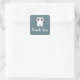 Thank you stickers with a drawing of a big white tooth with a cute kawaii smile and big happy eyes.