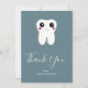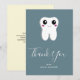 Thank you card with a drawing of a big white tooth with a cute kawaii smile and big happy eyes.
