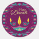 Celebrate a Happy Diwali with this pretty candle illustration on purple background round sticker
