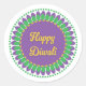 Circular Happy Diwali Stickers with purple, yellow and green colour theme.