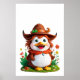 A cartoon duck wearing a hat and is surrounding with flowers. The duck is smiling and looks happy. This is a AI generated art.