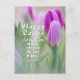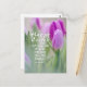 Inspirational scripture Easter greeting postcard depicts a garden of beautiful pink tulips. It features Bible Verse Psalm 105:3, "Let the hearts of those who seek the Lord Rejoice."*