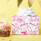 Fun bright pink Easter patterned graphic wrapping gift paper. Cute bunny rabbits, Easter eggs, flowers, and the greeting Happy Easter wrapping gift paper in shades of pink and white. Great for Easter gifts for girls or women. Customize with your own background colour if required currently white. Unique graphic art and pattern design by Sarah Trett.