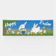 Adorable Easter bunnies and painted eggs. Happy Easter outdoor event sign.