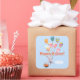 Stickers with my design of a bunny rabbit holding onto a bunch of colourful balloons and a basketful of Easter eggs while floating up into the sky. Customizable text says "Happy Easter".