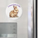 Cute, picture of a sweet little bunny, is featured on this round magnet for Easter. With message, "A Happy Easter To You", this makes a cute decoration or give as a little gift for the Easter holiday!