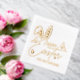 Happy Easter Bunny Ears Script Personalized Name Foil Napkins Real Foil Stamped Paper Napkins features the text "Happy Easter" in elegant calligraphy script typography accented with bunny ears, butterflies and love hearts and personalized with your name or custom text. Perfect to celebrate Easter in style. Created by Evco Studio www.zazzle.com/store/evcostudio