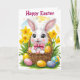 Happy Easter with this cute animals like easter bunny or baby chick. Join the easter egg hunt in spring with vibrant colours and joy, candy and a floral vintage fantasy. Cute rabbit with flowers. Customizable Greetings card.