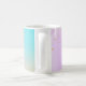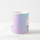 Editable Easter mug. The design has a cute bunny with flowers and text in an egg and a pastel multicolored background. At the bottom, you can edit the text by clicking on "personalize this template - details". This holiday mug is perfect to send to your family and friends, and wish them a Happy Easter.