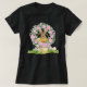 This cute bunny in a bucket is wearing a gold bow tie and is surrounded by a floral wreath with Easter eggs below. A fun t-shirt for any upcoming Easter get-together.