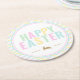 Happy Easter Bunny Pastel Stripe Round Paper Coaster