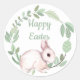 Happy Easter Bunny Rabbit Sage Floral Wreath Classic Round Sticker