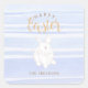 Celebrate Easter with this charming watercolor bunny sticker, featuring soft blue watercolor stripes and elegant golden "Happy Easter" script. A sweet white bunny illustration and personalized family name make it perfect for spring gifting.