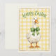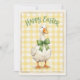 Happy Easter Card-Watercolor Duck With Green Polka Dot Bow On Yellow Gingham Background