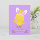 Happy Easter Chick Rabbit Ears Purple Yellow Cute Holiday Card