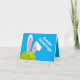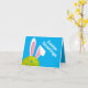 Cute blue Easter Bunny post card with real pickleball. Custom text front and inside.