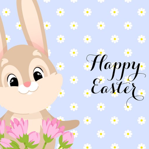 A cute, laconic design on a delicate blue background with daisies. A cute Easter bunny with a bouquet of flowers will help convey your warm wishes for grandma on the bright holiday of Easter.