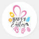 Happy Easter Cute Bunny With Easter Eggs Classic Round Sticker