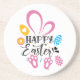 Happy Easter Cute Bunny With Easter Eggs Coaster