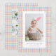 If you missed Christmas, New Year's and Valentine's Day, hey, why not send an Easter photo card. Perfect for spring family or kid photos, this one-photo Easter card features a sweet pastel rainbow plaid frame, a customizable message and a single photo. The back is a matching pastel plaid with room for two more photos or it can be left blank. This design is also available as a downloadable Easter card.