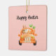 Happy Easter driver bunny on pink Ceramic Ornament