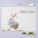 Happy easter, easter bunny walking with eggs tissue paper