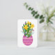 Brighten up someone's day with this cute & cheerful note card featuring watercolor illustration of a painted Easter Egg in shades of pink & magenta decorated with blossoming yellow Daffodils and flowering white Snowdrops surrounded by pink butterflies. Text states "Happy Easter" in elegant font. All text can be updated to create a a customize card or personalized stationary.