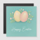 Happy Easter eggs and flowers soft blue